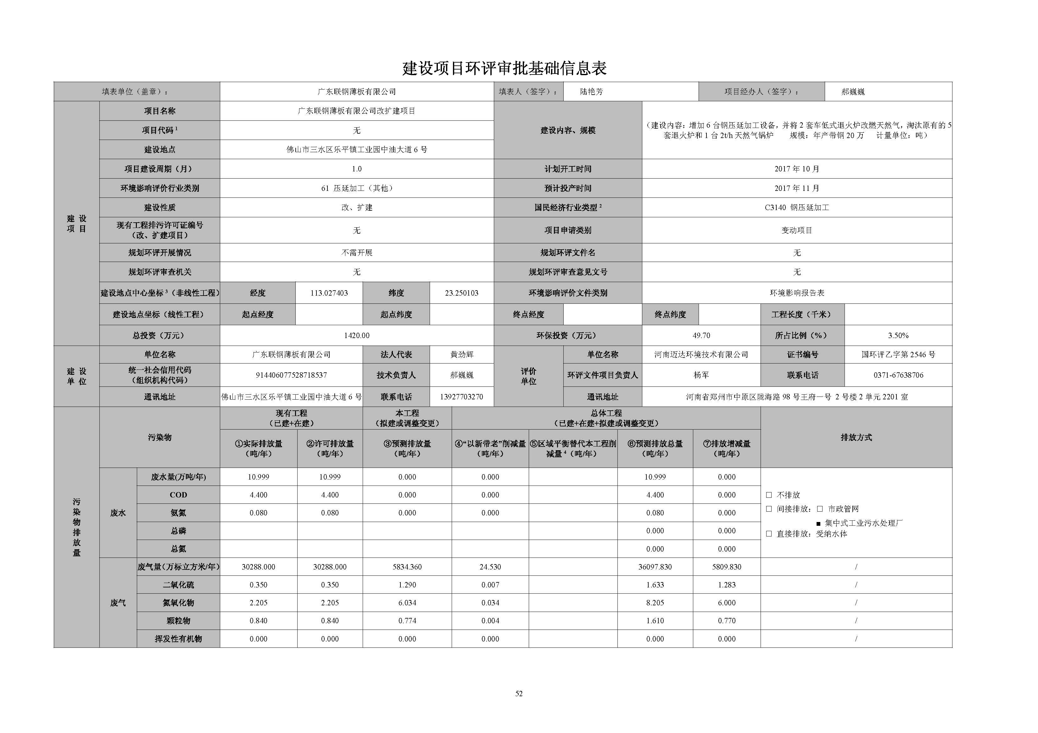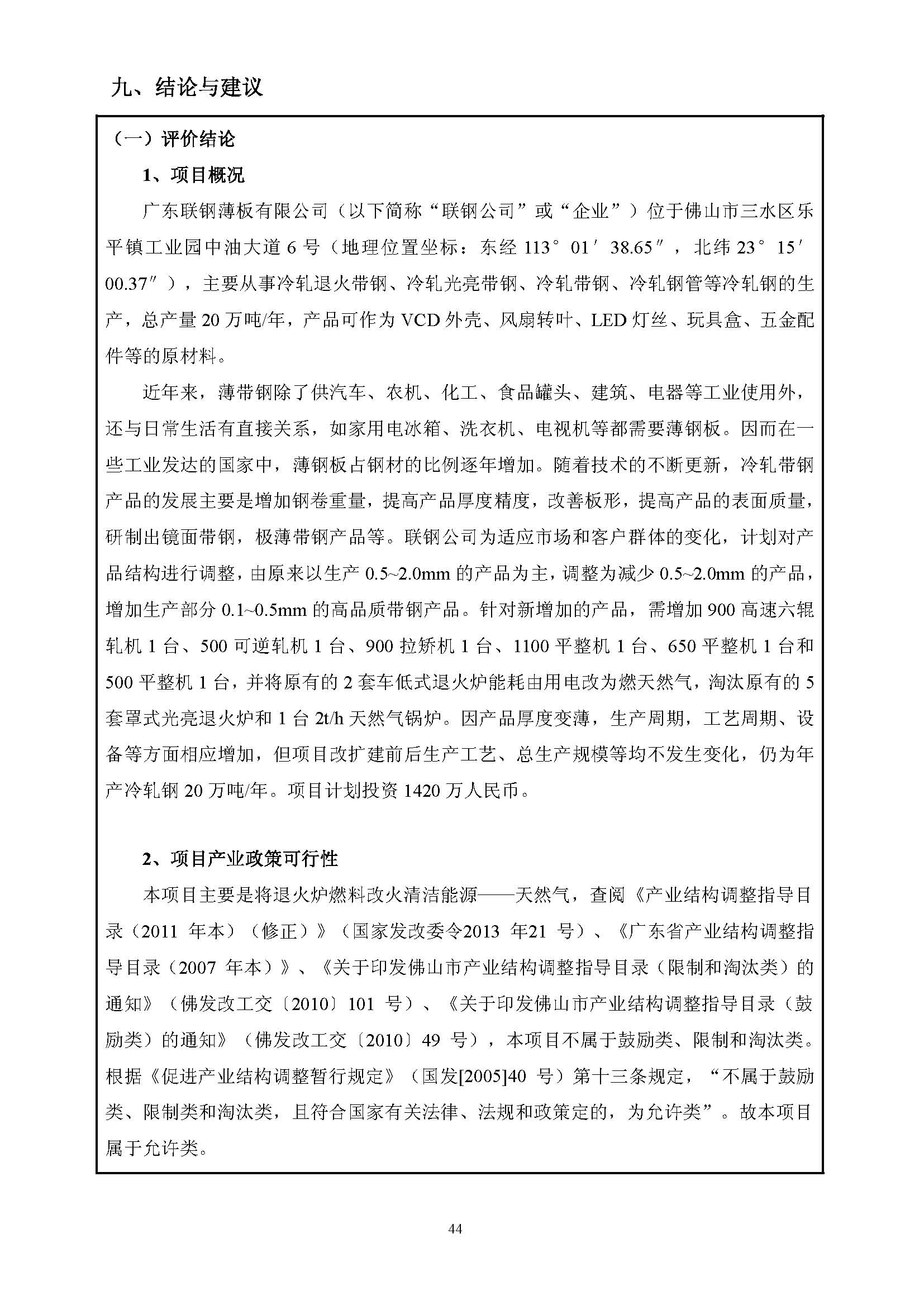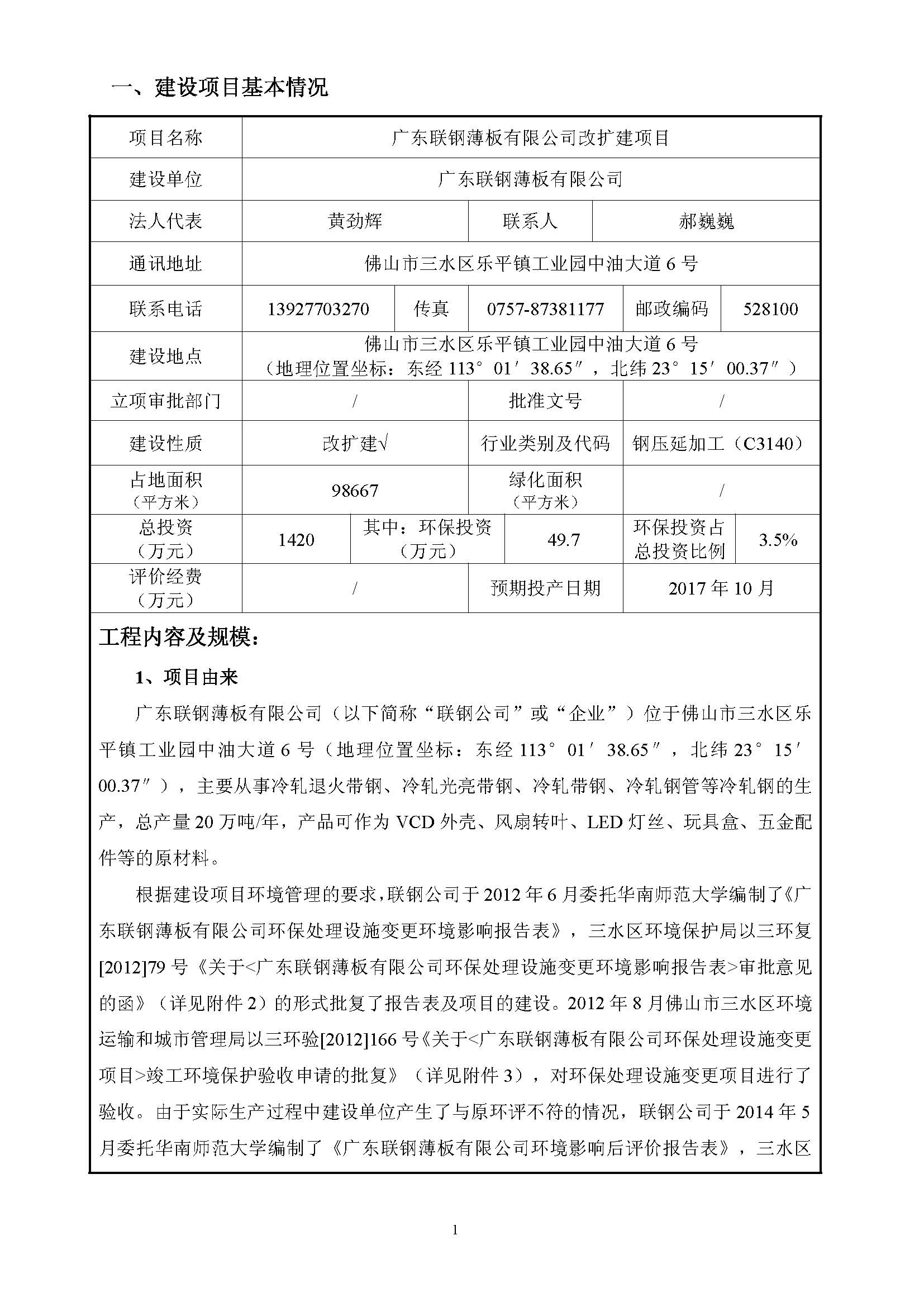 广东联钢薄板有限公司改扩建项目环评报告表