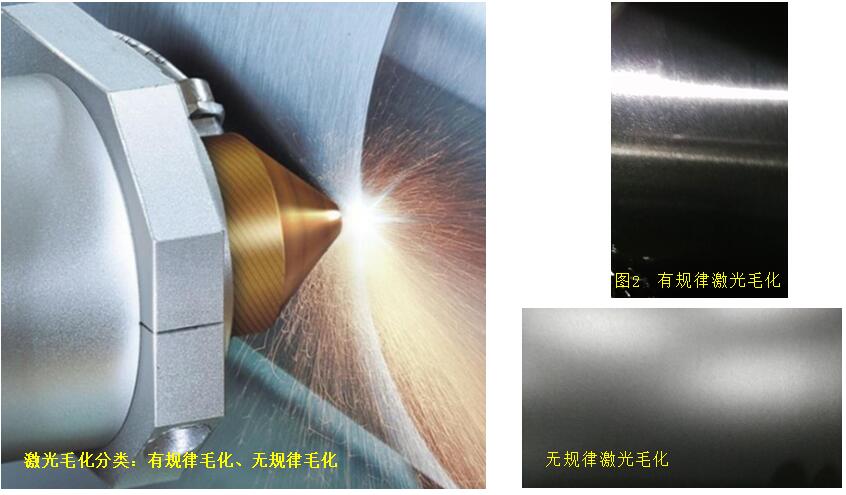 激光毛化设备和加工方法已经成熟运用在钢铁、冶金的精密带钢、冷轧薄板、镀锡板、镀锌板、不锈钢板带上。应用激光毛化技术对轧辊能够提高轧辊的使用寿命、减少辊耗,减低退火粘连缺陷,对板、带能够提高产品冲压性能、改善表面涂漆负着力,增加光亮度,减少黑带现象等。